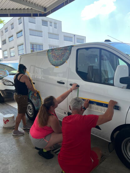 Wir haben unsere Autos mit dem neuen Logo beschriftet.